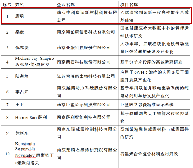 日前,南京市人才工作领导小组办公室对 2017 年度“科技顶尖专家集聚计划” 入选人才项目进行公示。上海m88有限公司与中科院上海有机化学研究所共同投资的南京中科康润新材料科技有限公司(以下简称南京康润)首席科学家唐勇院士研究团队的“乙烯直接制备新一代高性能全合成基础油”成功入选该重量级的人才项目。