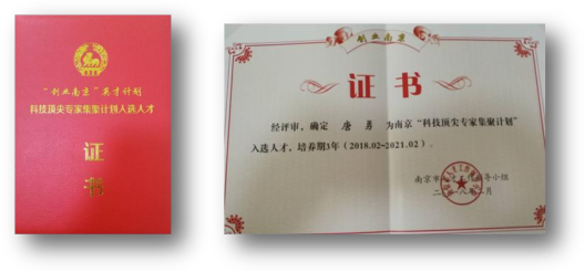 南京中科康润新材料科技有限公司首席科学家唐勇院士入选 2017 年度南京市“科技顶尖专家”